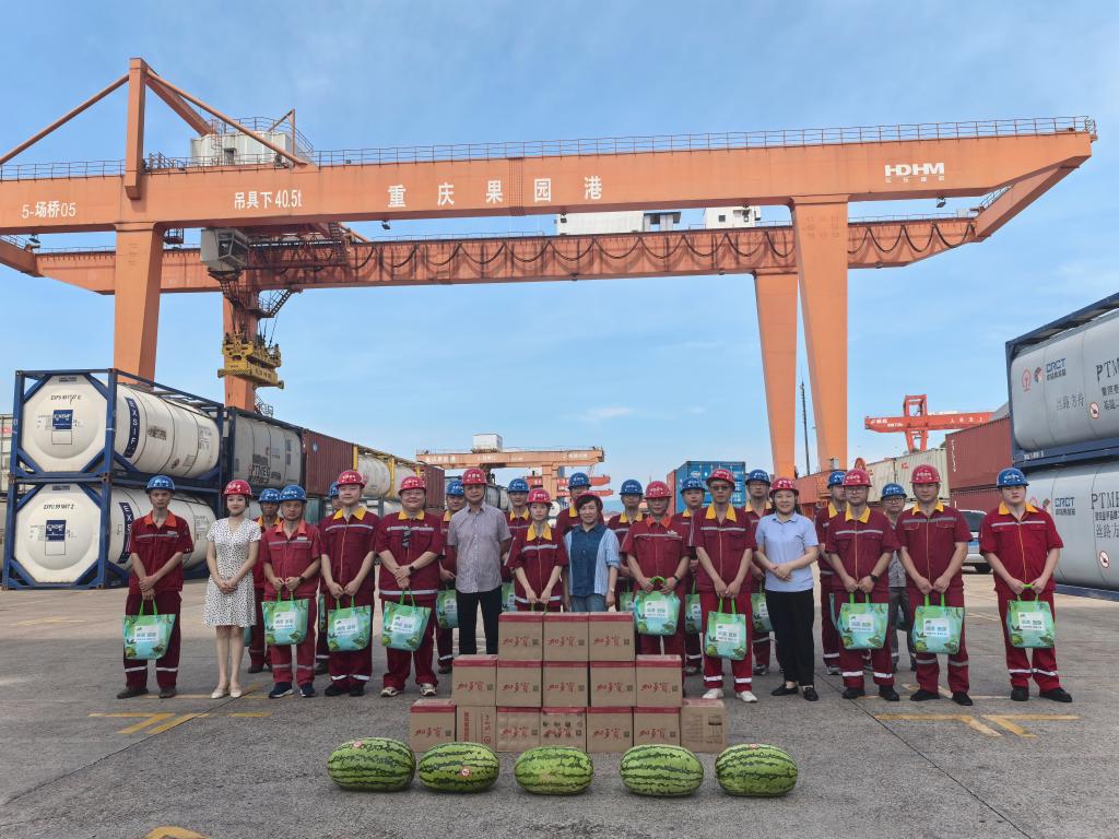 在果园港埠公司铁路作业区,文雨梅为职工们递上清凉饮料、防暑降温药品等物资,对职工们的辛勤付出表示高度赞扬。文雨梅详细询问了高温下职工们的工作情况和生活情况,并叮嘱大家要注意防暑降温,合理安排工作时间,确保身体健康,保证公司生产作业正常运行。