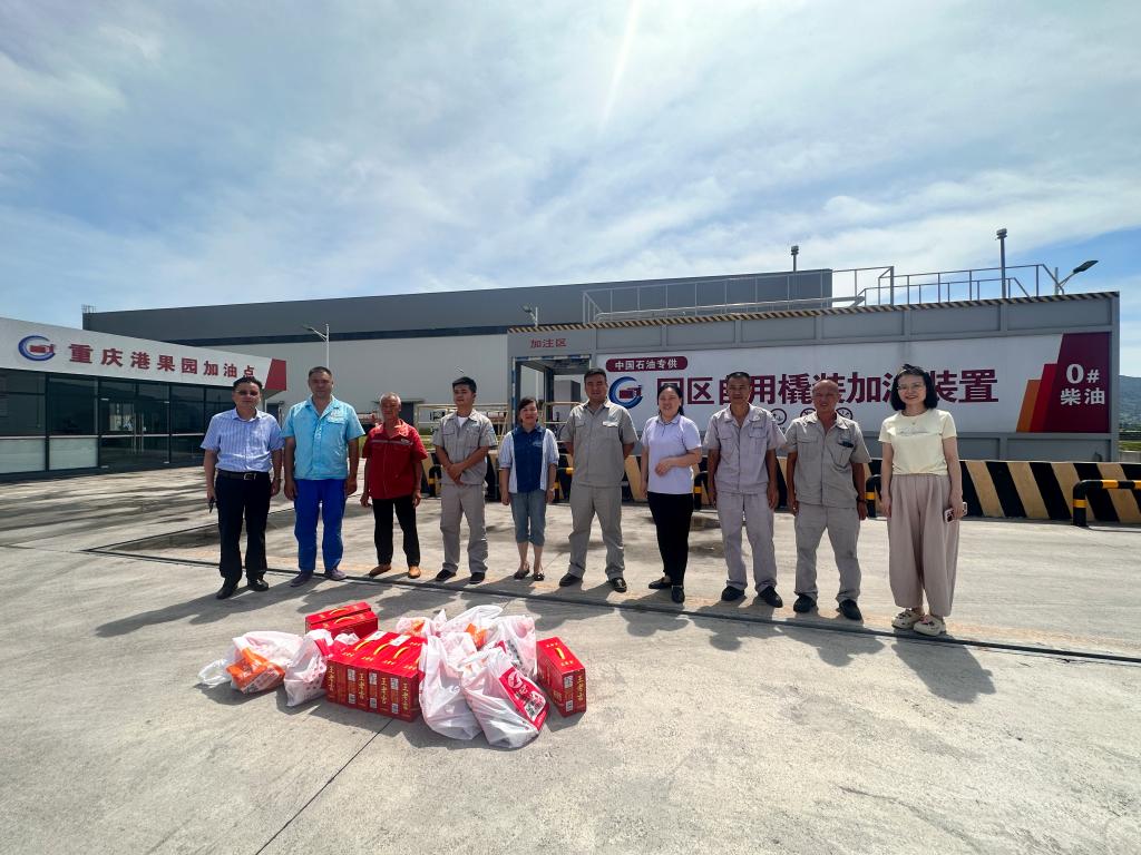 在民爆公司果园港区撬装式加油站班组,文雨梅一行为现场的一线职工送去了清凉慰问,表达了对职工的关心、关怀,也给持续高温的夏季带来一丝惬意、一缕清凉。文雨梅对一线职工的爱岗敬业和无私奉献致以真诚的感谢,并要求民爆公司要做好职工们日常工作及生活中的后勤保障工作,做好高温季节的防暑降温设施,为公司安全生产保驾护航。
