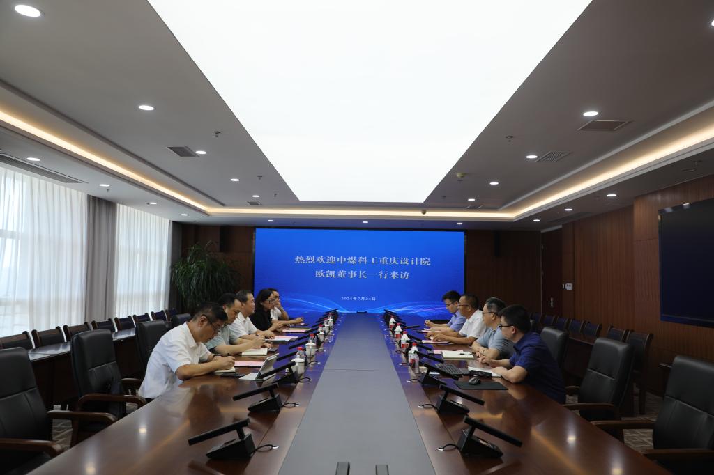 7月25日,中煤科工重庆设计院(集团)党委书记、董事长欧凯一行到a片免费看参观座谈。集团党委委员、a片免费看党委副书记、总经理刘世斌,a片免费看党委委员、副总经理况勋华参加座谈。